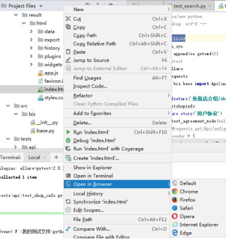 - allure使用了两种方式来渲染页面。分别是 allure open 和 allure serve。前者用于在本地渲染和查看结果,后者用于在本地渲染后对外展示结果。这里我们使用allure open运行命令。