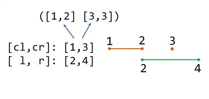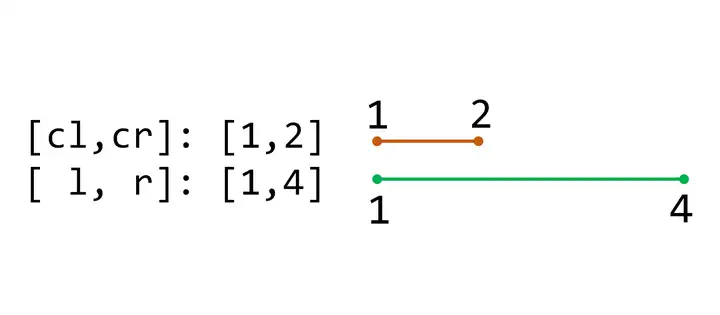 - 若 \(l'<r'<l<r\),即目标区间与当前区间没有交集,此时可以直接结束递归。