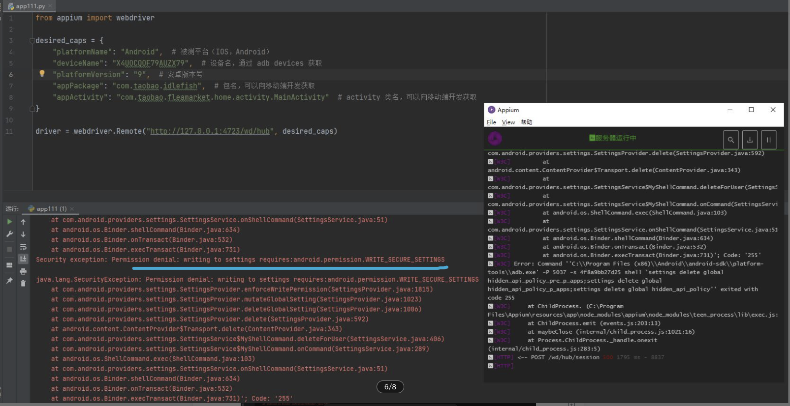 Permission denial: writing to settings requires:android.permission.WRITE_SECURE_SETTINGS