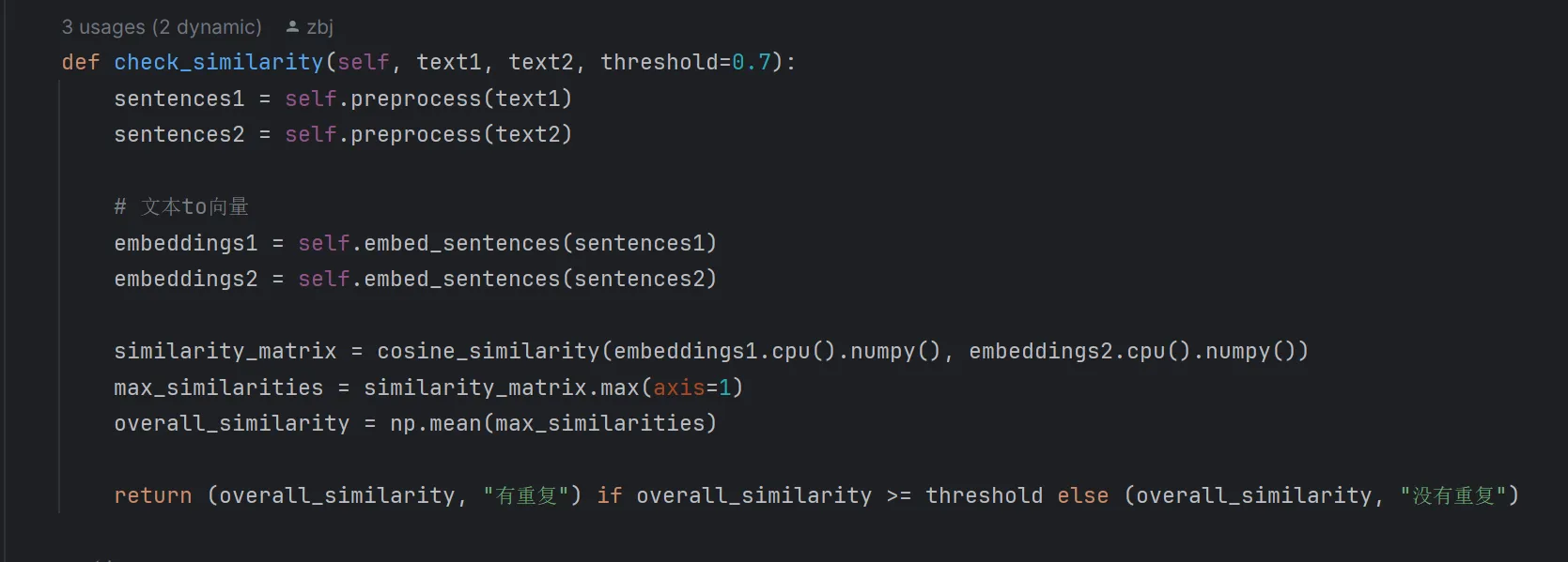 return (overall_similarity, "有重复") if overall_similarity >= threshold else (overall_similarity, "没有重复")