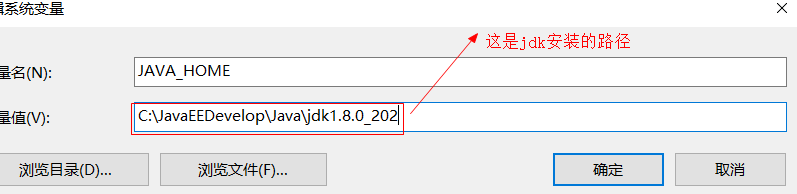 变量值:填写jdk安装路径