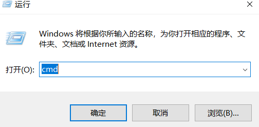 按win+R快捷键,输入cmd,按确定打开命令行,