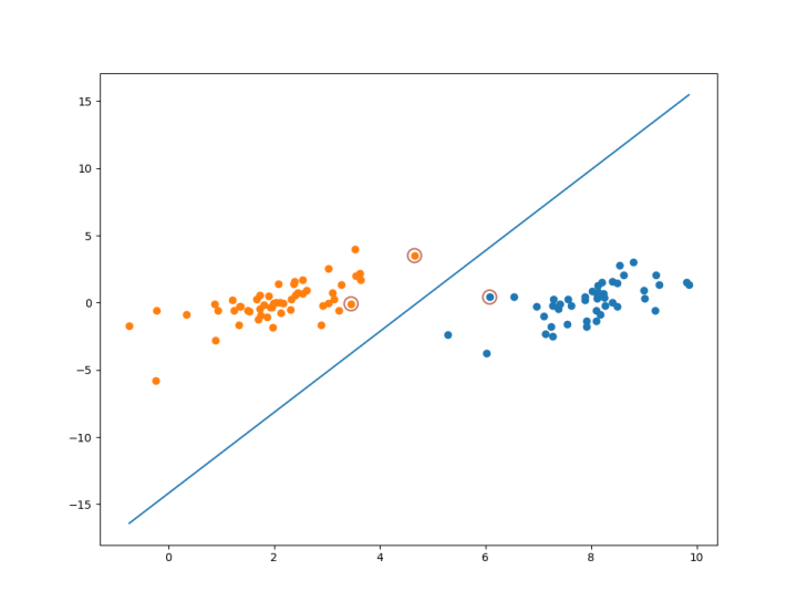 为了能直观的显示支持向量,我将其标注了出来,最终可视化的效果如下图: