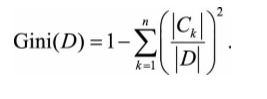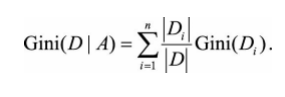 其中,Di表示D中特征A取第i个值的样本子集,Dik表示Di中属于第k类的样本子 集。