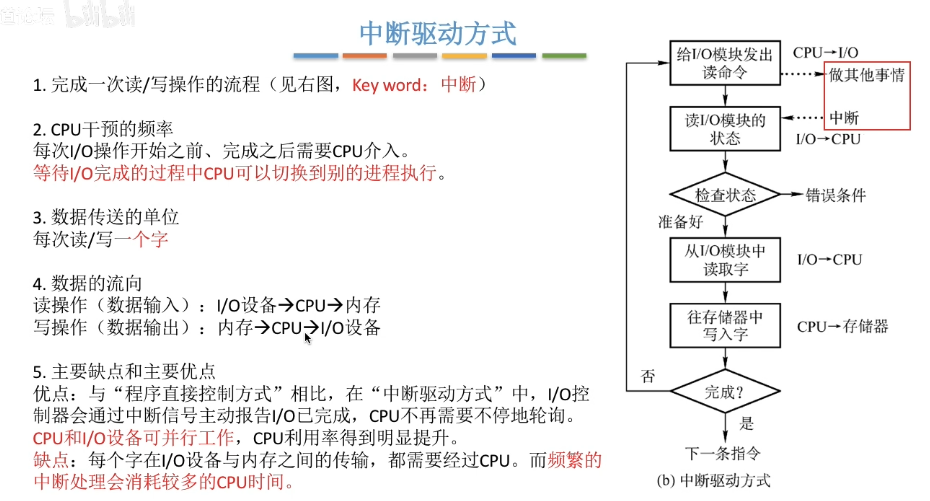 3.DMA方式:direct memory access,直接存储器存取,数据的传送单位是“块”,直接存入内存,不需要CPU作为快递小哥,降低cpu干预。