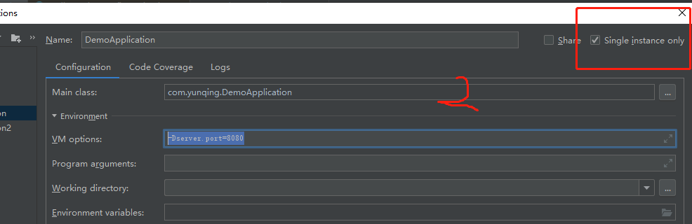 如果你的IDEA版本没有这个选项的话,那应该会有个 Allow parallel run(允许多例运行) 选项,那就把该选项的勾打上;