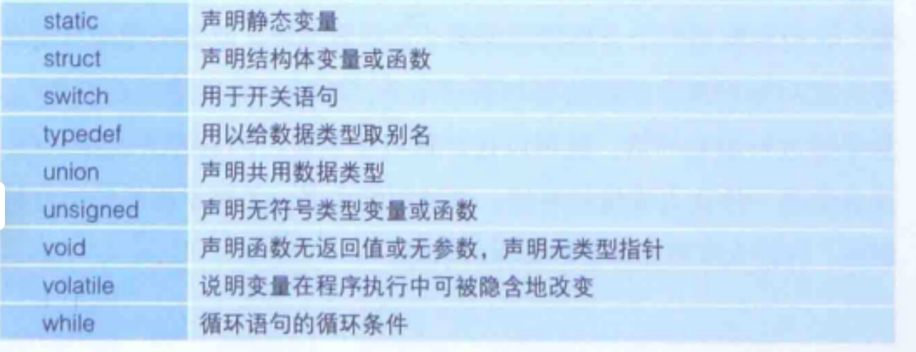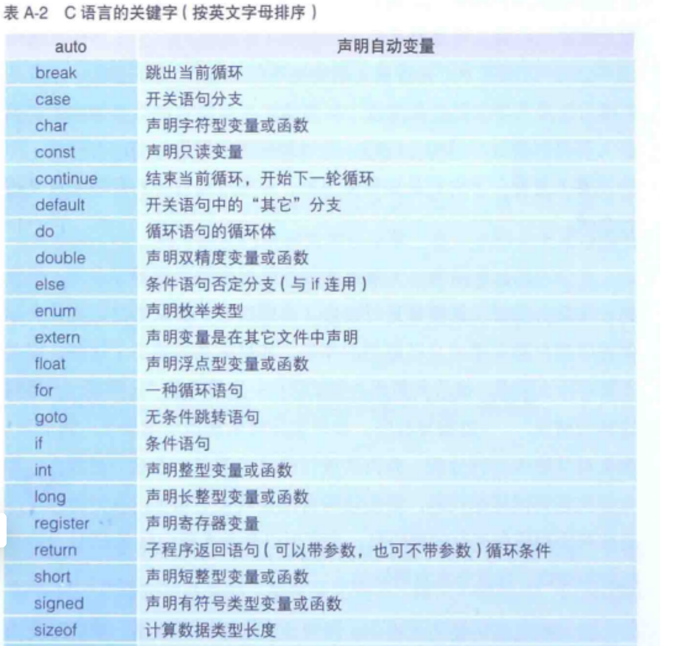 C语言的语法结构是ANSI制定的ANSI规定了如表A-2所示的32个C语言的关键字。