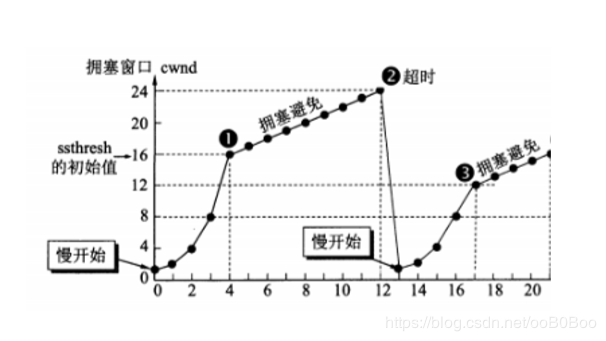 无论是在慢开始阶段还是在拥塞避免阶段,只要发送方判断网络出现拥塞(其根据就是没有 收到确认,虽然没有收到确认可能是其他原因的分组丢失,但是因为无法判定,所以都当做 拥塞来处理),就把慢开始门限设置为出现拥塞时的发送窗口大小的一半。然后把拥塞窗口设置为1,执行慢开始算法。 如图所示: