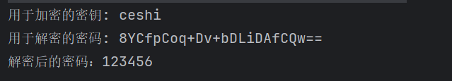此时我们拥有两个信息,一个为**用于加密的密钥**,一个为**加密过后的密码**。在application.yml中添加如下配置: