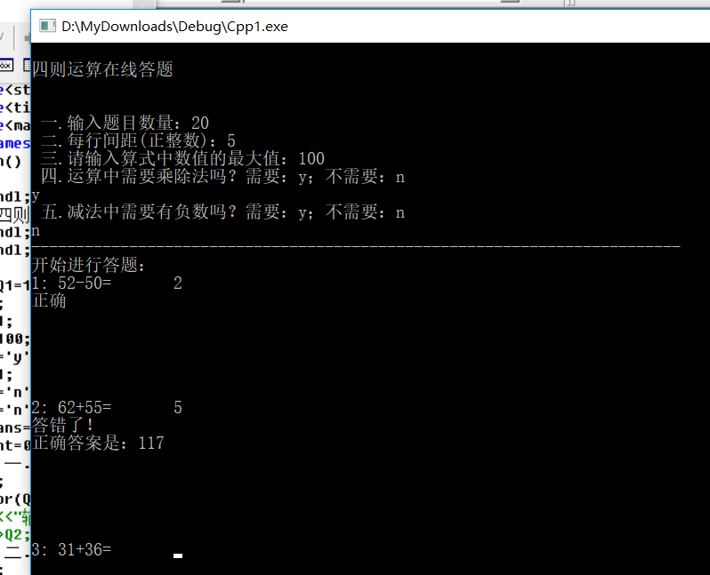 cout<<"正确答案是:"<<num1-num2<<endl;