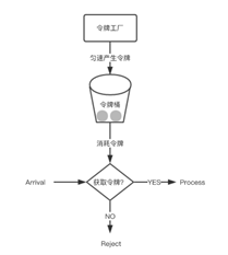 - 实现思路:可以准备一个队列,用来保存令牌,另外通过一个线程池定期生成令牌放到队列中,每来一个请求,就从队列中获取一个令牌,并继续执行。