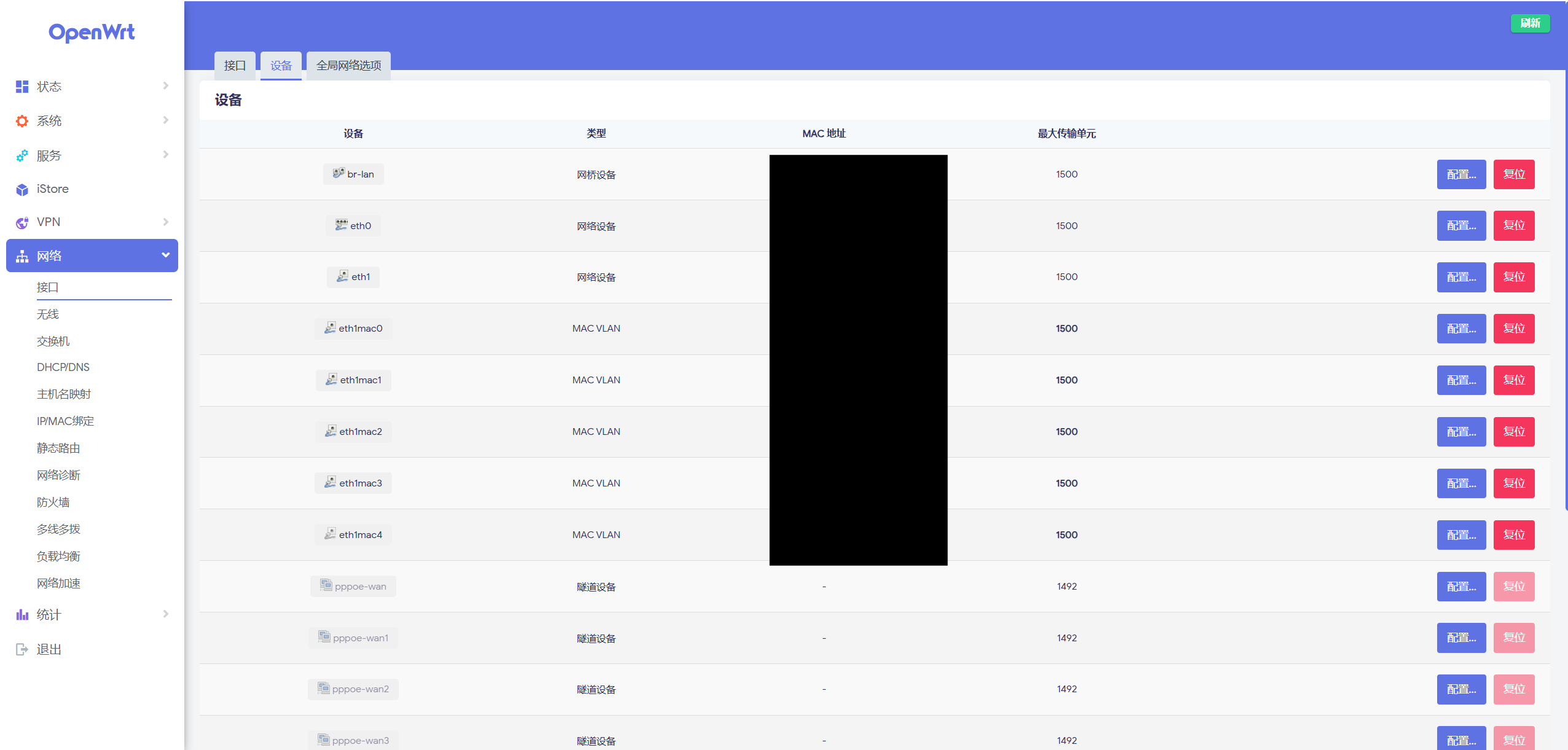 然后以相同的方式再多创建几个 MAC VLAN 设备,注意这些设备的 MAC 地址应当不同。