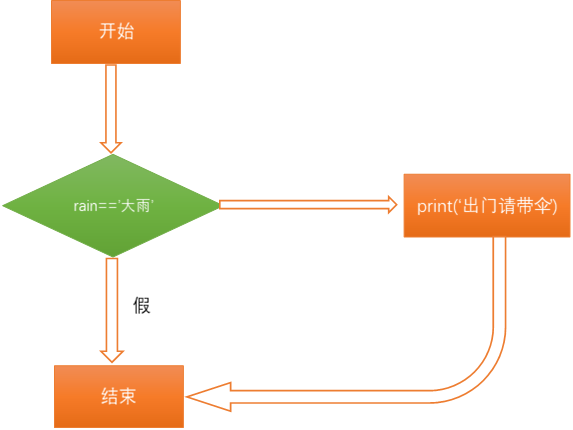 还是上面的例子,再加一个条件:如果没下雨,就不用带伞