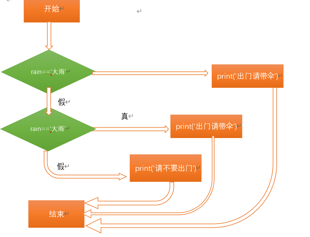 还是上面例子,如果下大雨,出门带伞,否则请不要出门