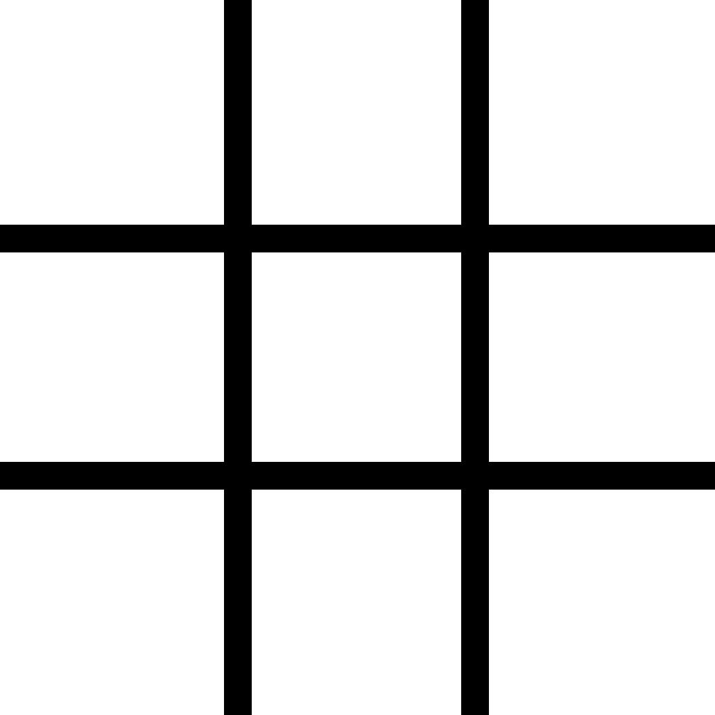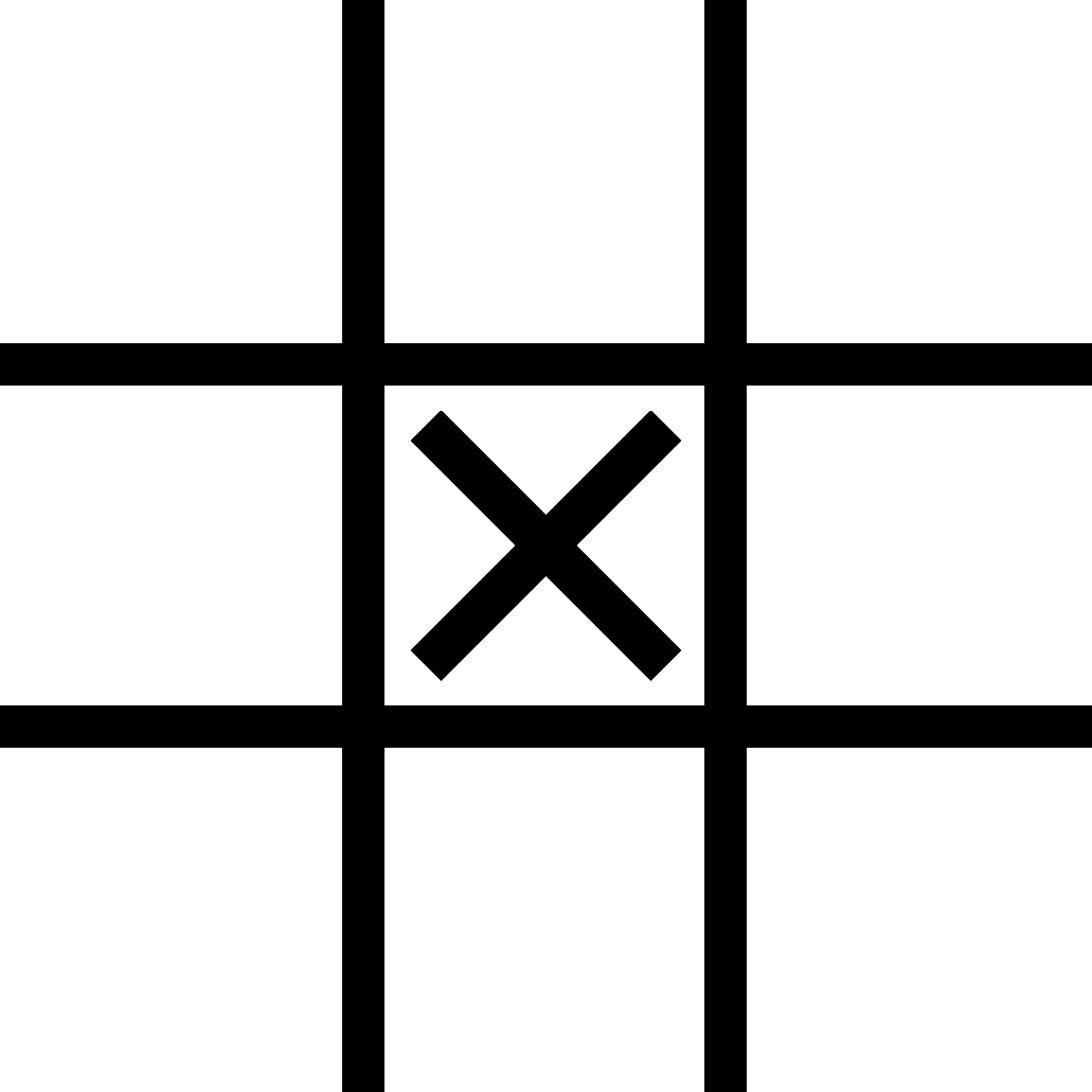 井字棋盘看起来像一个大的井字符号(#),有 9 个空格,可以包含 X、O 或空。