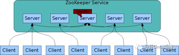 上图中有5个ZooKeeper节点,其中一个节点为Leader,除leader节点外,其它都是追随者Follower,Client与ZK集群建立TCP长连接,只有追随者Follower节点来与Client建立连接(我们的Client与Follower建立的连接会始终存在,只有Client不再参与集群或者客户端出现故障之后才会断开连接,是一个持久会话,通过此会话,Client会不短向自己所连接的Follower更新自己的状态信息),并处理Client的请求,如果Client为读请求,则会转发到Follower或者本机进行处理,如果为写请求则转发给Leader处理。如果Client与连接的一台ZK集群中的服务器发生数据变更,则ZK集群中的这台服务器会把变更内容同步到ZK集群中的所有ZK服务器。