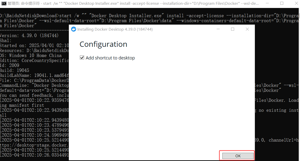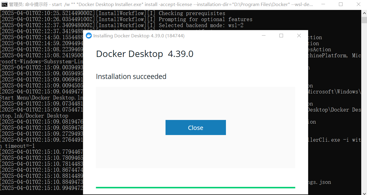 start /w "" "Docker Desktop Installer.exe" install -accept-license --installation-dir="D:\Program Files\Docker" --wsl-default-data-root="D:\Program Files\Docker\data" --windows-containers-default-data-root="D:\Program Files\Docker"-