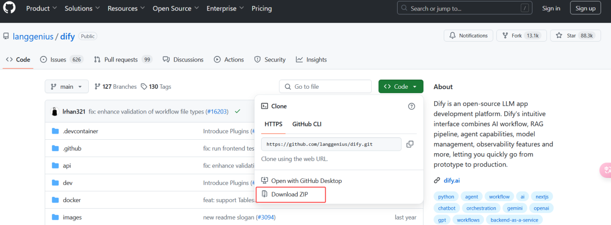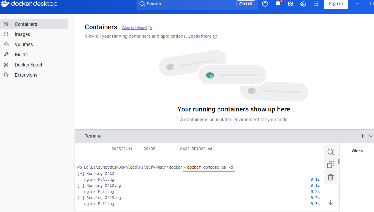 Dify是一款开源的大语言模型应用开发平台。它融合了后端即服务(Backend as Service)和 LLMOps 的理念,内置了构建 LLM 应用所需的关键技术栈,包括对数百个模型的支持、直观的 Prompt编排界面、高质量的 RAG引擎、稳健的 Agent 框架、灵活的流程编排,并同时提供了一套易用的界面和 API。使开发者可以快速搭建生产级的生成式 AI 应用。并且Dify支持本地私有化部署。本篇文章就详细讲解如何在windows系统上实现Dify本地化部署。