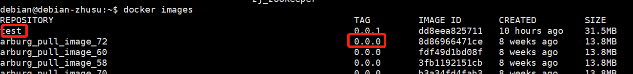 4. 通过docker images 可以查询到生成的镜像test:0.0.1