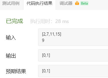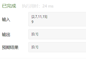 给定 nums = [2, 7, 11, 15], target = 9 因为 nums[0] + nums[1] = 2 + 7 = 9 所以返回 [0, 1]