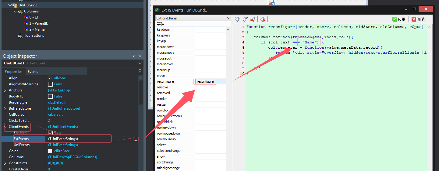 在UniDBGrid的ExtEvents事件下加如下代码: