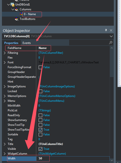 // UniDBGrid1.Columns[3].Width := 90; // UniDBGrid1.Columns[0].Alignment := taLeftJustify; // 靠左 排列 UniDBGrid1.Columns[3]类似属性,要写在FormCreate