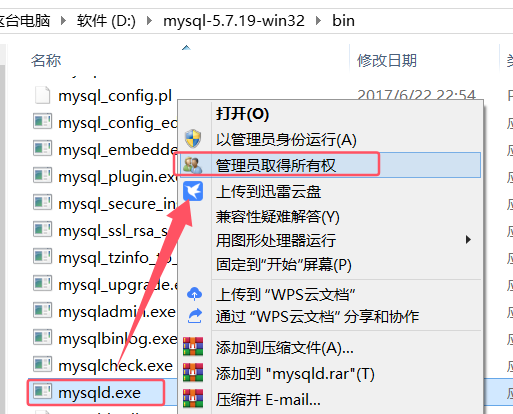 MySQL解压后的 bin 目录下有一大堆的可执行文件,执行如下命令初始化数据: