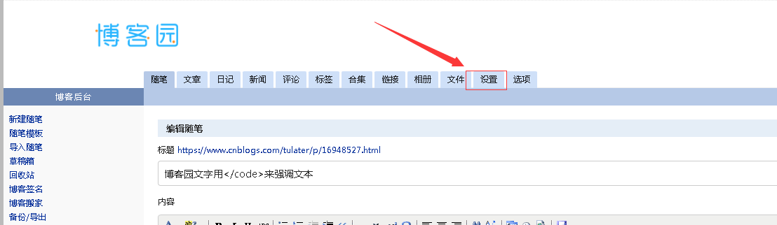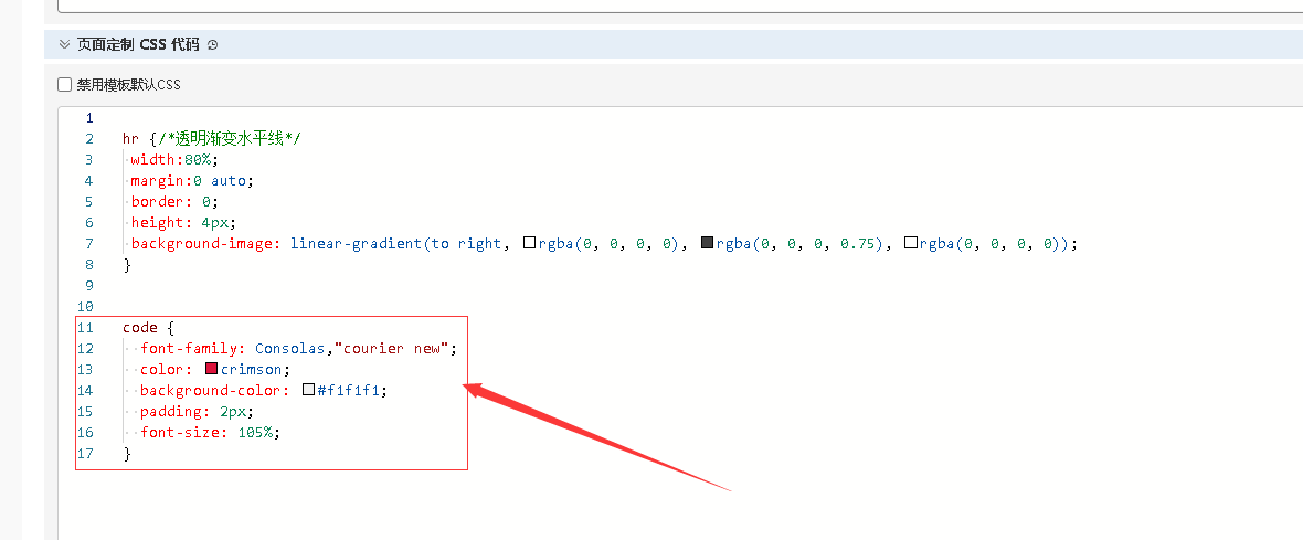 然后 ,在 博客园后台,设置<code>标签的样式: