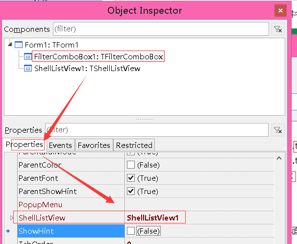 1]将FilterComboBox1的ShellListView设置为ShellListView1