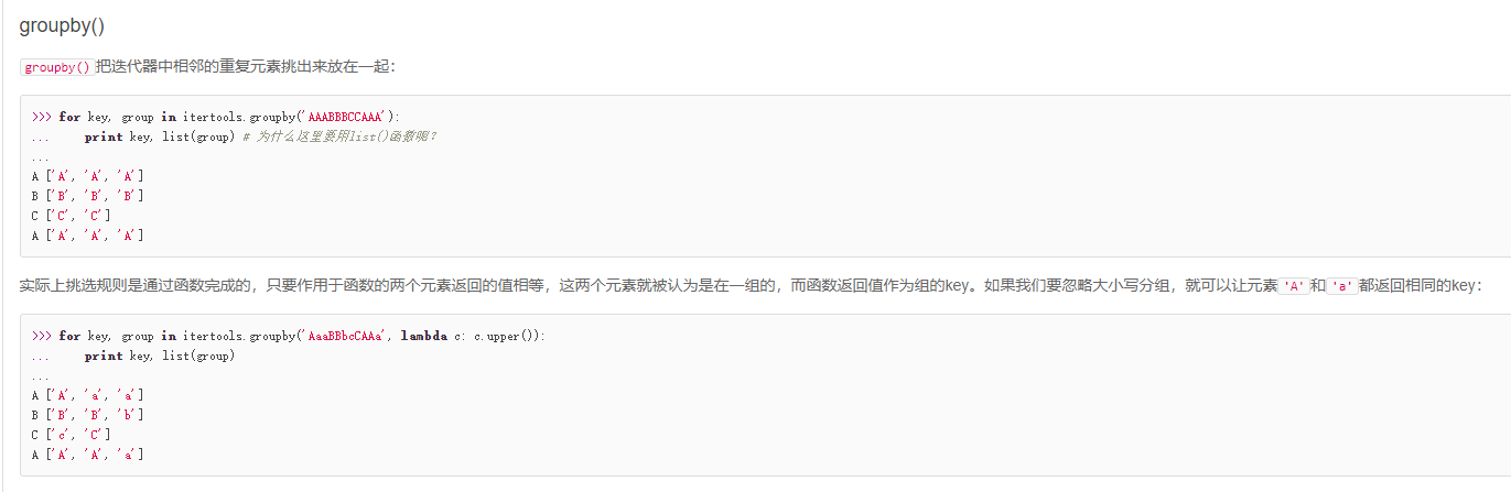 python(二十) itertools.groupby() 把相邻的重复元素放在一起