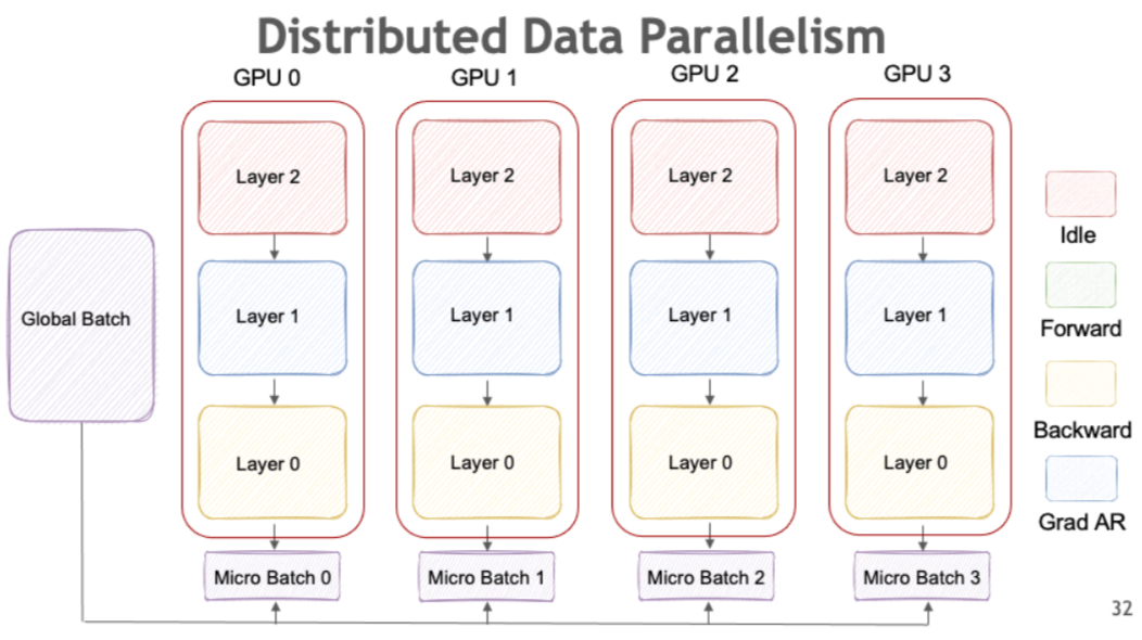 - 小模型/大数据集:此方法仅在模型能装入单个GPU内存,但数据集不行的情况下有效。