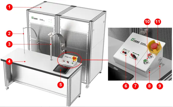 11.急停开关 用于在紧急状况下直接断开系统供电电源,保护操作人员安全。