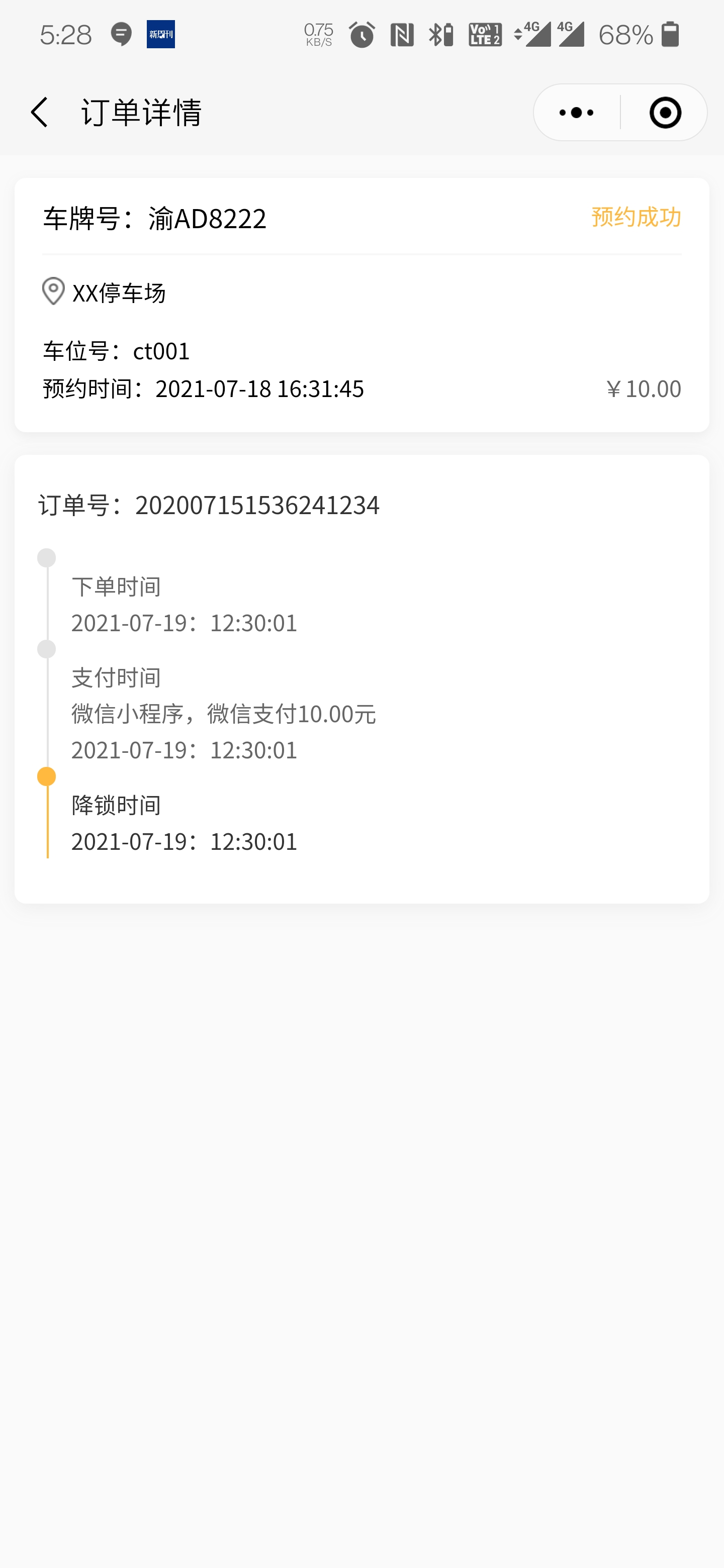 data: { stepList:[ { name:"下单时间", event:"", time:"2021-07-19:12:30:01", status:"0" }, { name:"支付时间", event:"微信小程序,微信支付10.00元", time:"2021-07-19:12:30:01", status:"0" }, { name:"降锁时间", event:"", time:"2021-07-19:12:30:01", status:"1"//status步骤条状态。=1表示最后一条渲染不同样式 } ] }, /** * 生命周期函数--监听页面加载 */ onLoad: function (options) { this.step = this.selectComponent("#step"); },