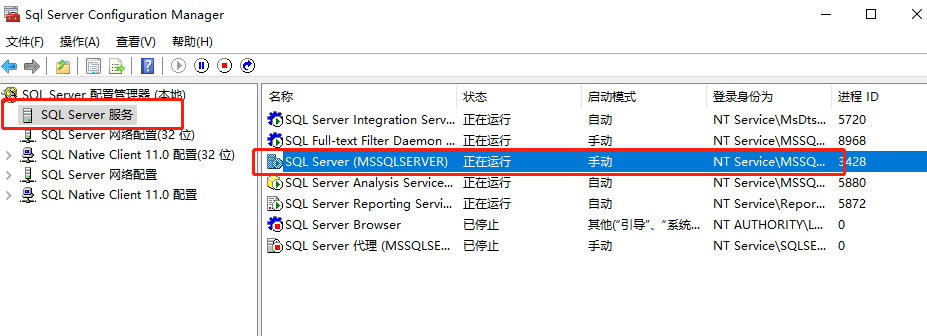 1.2.1 开始菜单--sql sever 配置管理器 -- 启动