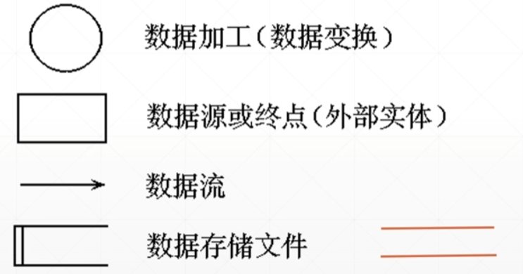 1)数据流图上所有图形符号只限于前述四种基本图形元素