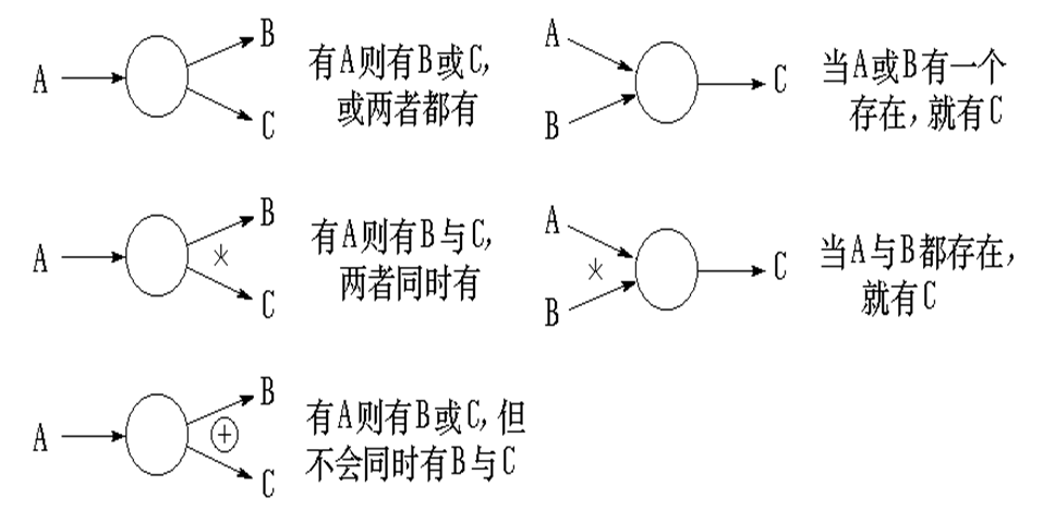有这个小“火”标志的就好似一个“并”,不然就默认的是两个“或”。“⚪ + ”就是“不可能同时”