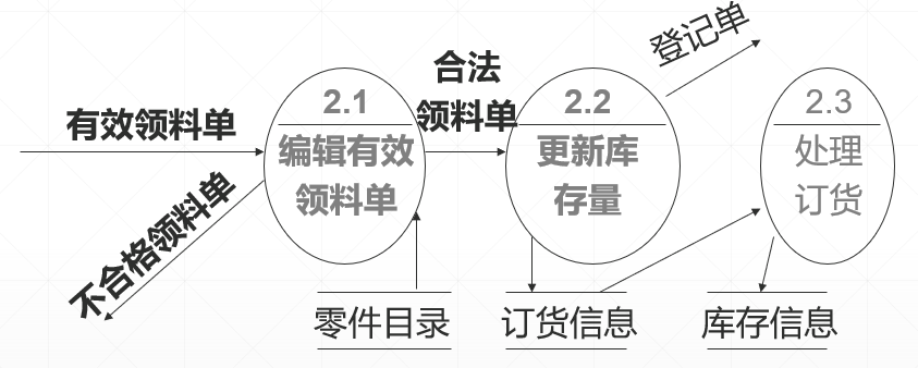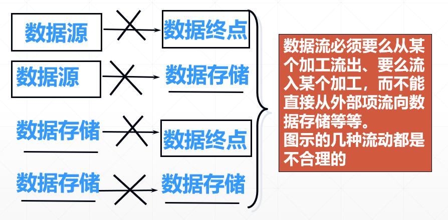 改正:数据流必须要么从某个加工流出、要么流入某个加工,而不能直接从外部项流向数据存储等等。