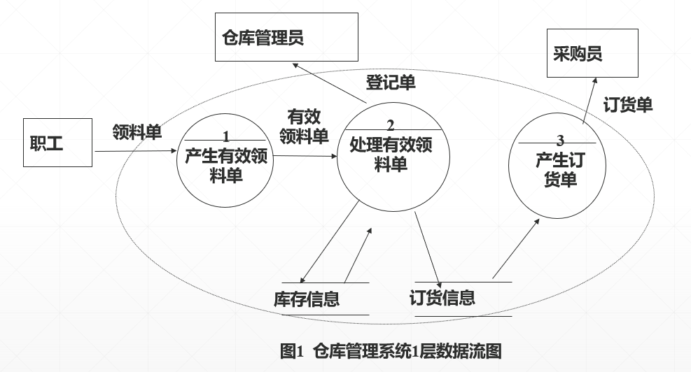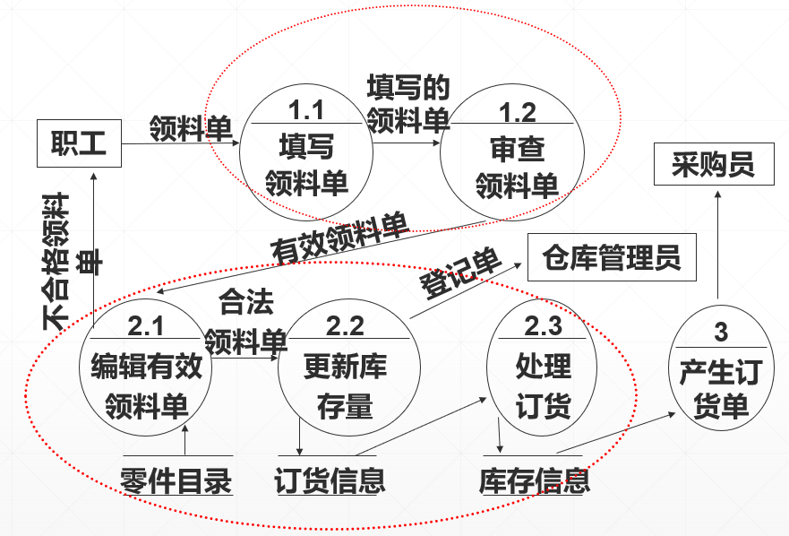 经过分析,主要数据流输入的源点和输出终点是职工和仓库管理员、采购员。