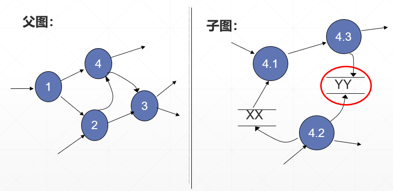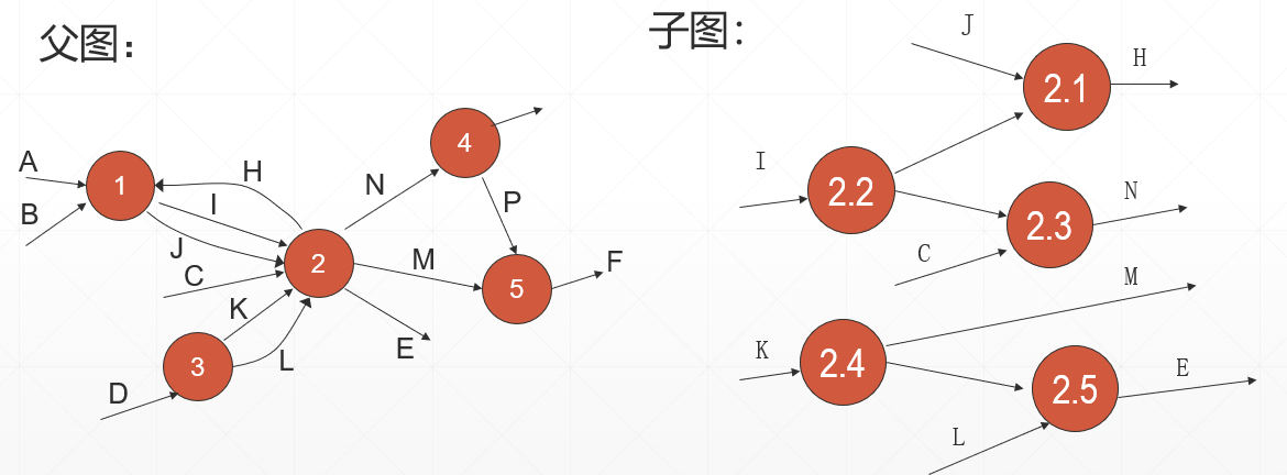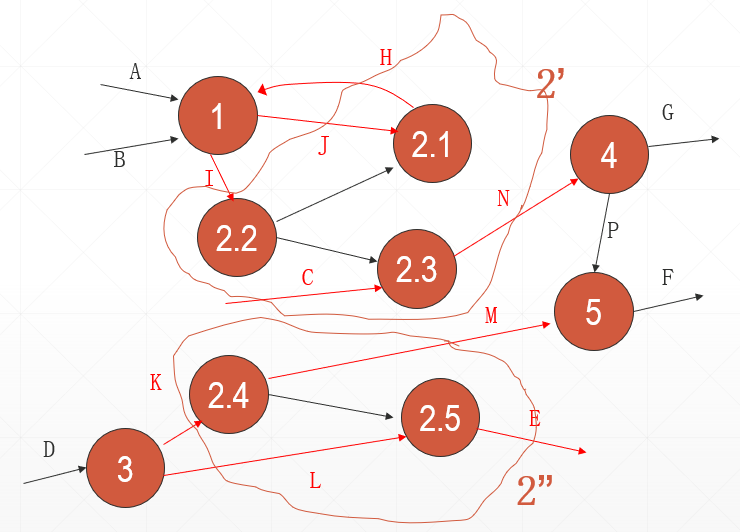 3)重新建立父图,即把第2)步所得的每一部分画成一个圆,而各部分之间的联系就是加工之间的界面。