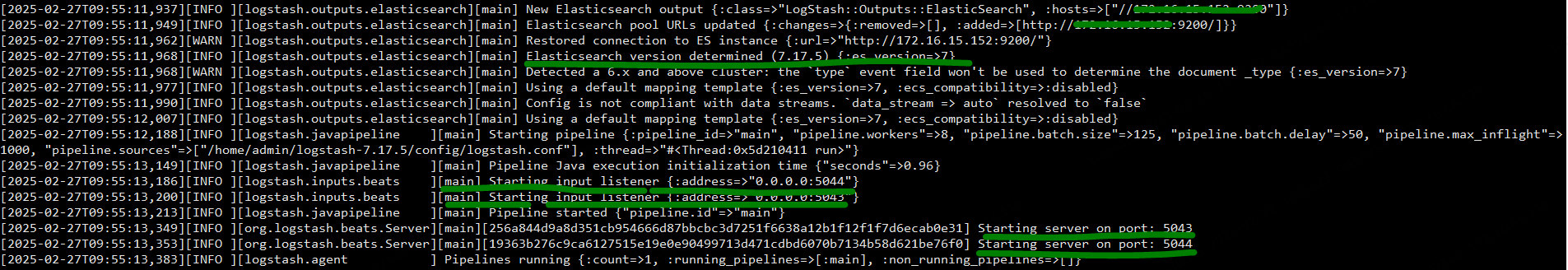 [Unit] Description=Logstash Documentation=https://www.elastic.co/guide/en/logstash/current/index.html Wants=network-online.target After=network-online.target [Service] ExecStart=/home/admin/logstash-7.17.5/bin/logstash -f /home/admin/logstash-7.17.5/config/logstash.conf Restart=always User=root [Install] WantedBy=multi-user.target