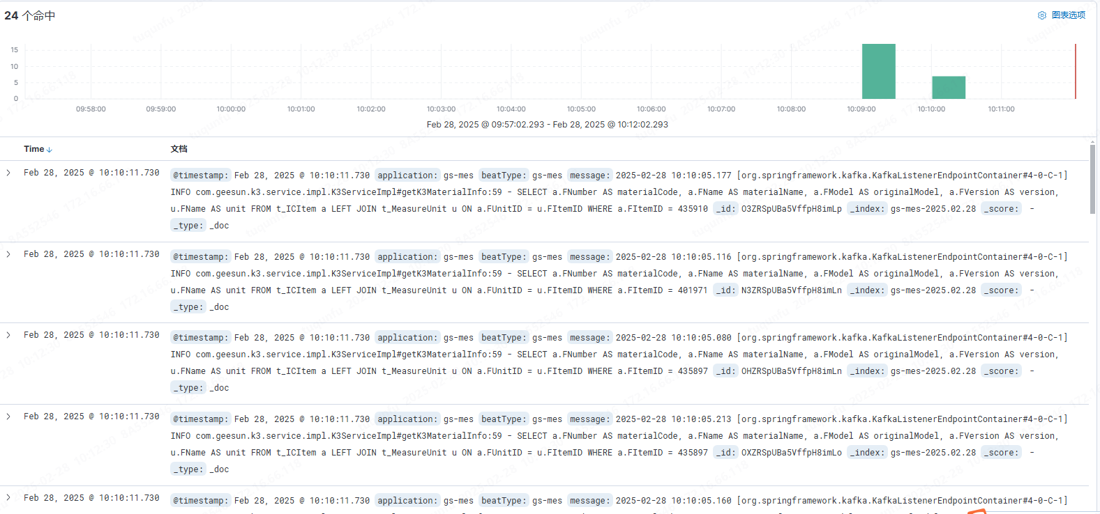 # Sample Logstash configuration for creating a simple # Beats -> Logstash -> Elasticsearch pipeline. input { beats { add_field => {"beatType" => "gs-xxx"} port => 5044 } beats { add_field => {"beatType" => "gs-xxx"} port => "5043" } } filter { grok { match => { "message" => "%{TIMESTAMP_ISO8601:createTime}%{SPACE}\[%{DATA:threadName}\]%{SPACE}%{LOGLEVEL:LEVEL}%{SPACE}%{JAVACLASS:javaClass}#(?<methodName>[a-zA-Z_]+):%{INT:linenumber}%{SPACE}-%{GREEDYDATA:msg}" } } mutate { remove_field => ["log","tags", "input", "agent", "host", "ecs", "@version"] } } output { if [beatType] == "gs-xxx" { elasticsearch { hosts => ["127.0.0.1:9200"] index => "gs-mes-%{+YYYY.MM.dd}" } } if [beatType] == "gs-xxx" { elasticsearch { hosts => ["127.0.0.1:9200"] index => "gs-wms-%{+YYYY.MM.dd}" } } #elasticsearch { #hosts => ["127.0.0.1:9200"] #index => "%{[index_name]}" #user => "elastic" #password => "changeme" #} }