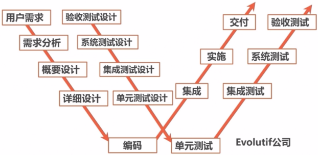 测试依旧是开发生命周期中的阶段,与瀑布模型不同的是,有多个测试级别与开发阶段对应;