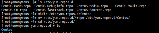 新装的系统里,在/etc/yum.repos.d目录下会生成很多yum源,都是国外的,本则不胡乱删文件的理念,把这些.repo源文件都移动到新建的Centos目录下