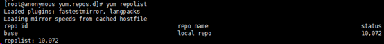 本地源已完成,使用yum repolist罗列出配置的仓库的软件包