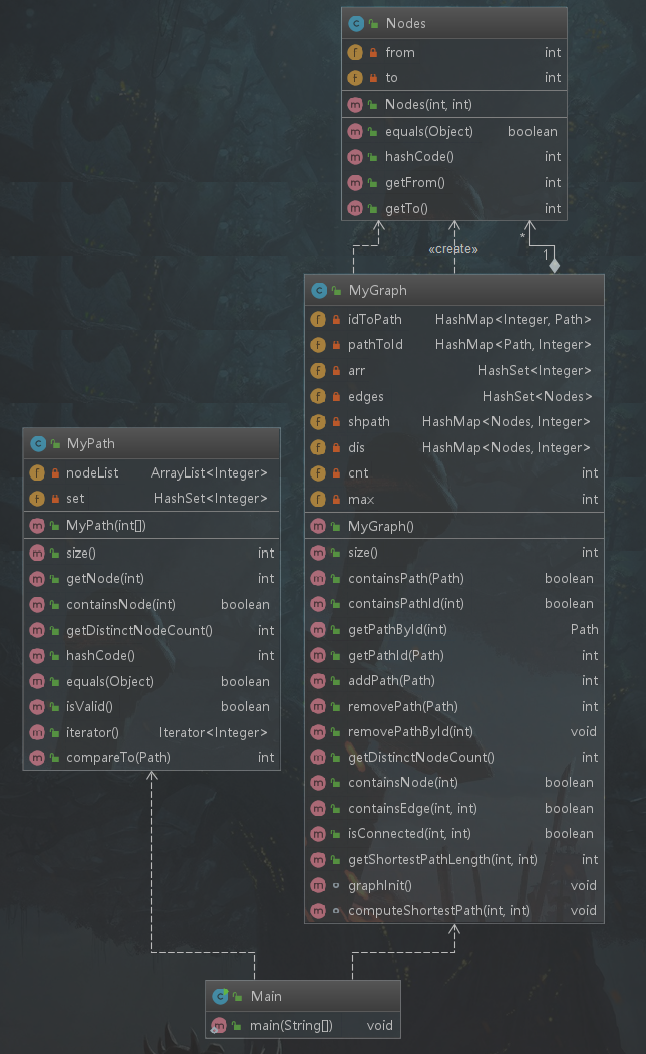 第二次作业要将Path集合存成无向图,计算两个结点之间的最短路,以及判断连通性。首先设立一个新类Nodes表示一组点对,然后建立HashSet