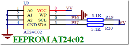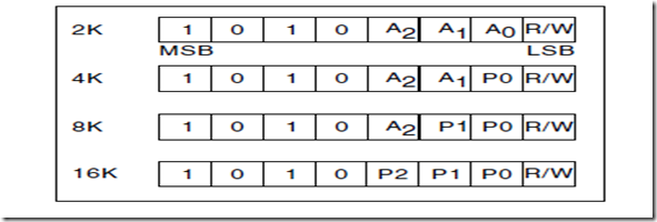 AT24C系列EEPROM芯片的固定部分为1010,A2,A1,A0引脚接高低电平后得到确定的3位编码,形成7位编码即为该器件的地址码。