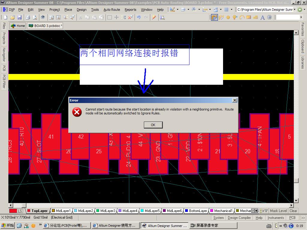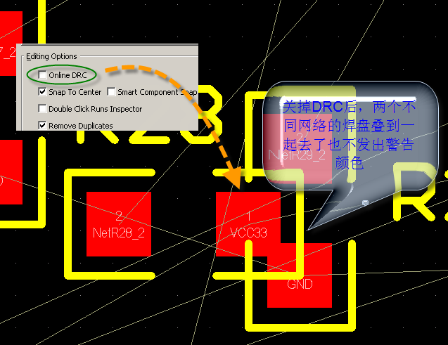 我觉得闻道有先后,但绝对不是以“用altium designer时间”长短作为得道的依据,看看上面这个图片所出现的情况吧,即使“关掉drc走线也不会短路,连线时不是一个网络他不会连接的”——但两个不同网络的焊盘移动到一起,它也不出现“黄牌警告”。 我觉得用AltiumDesigner的同时,对内存、CPU、显卡进行节能减排,思路是很好的。但站在我个人的角度来看:把焊盘、过孔以线框素描(有选项为“Draft”)的方式来显示,覆铜用线框显示,再辅之以过滤规则来设计,则电脑的硬件软件的消耗大大减小。 |