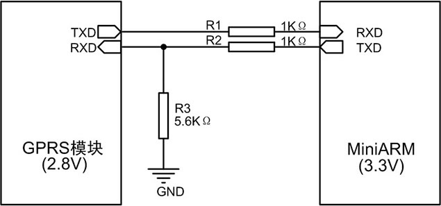 使用二极管来实现电平匹配,以MiniARM核心板与GPRS模块为例。