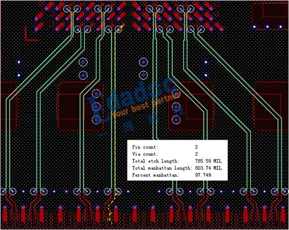 一个朋友前不久设计了一款28G-VSR协议的板子接光模块,光口连接器采用的是CFP2的表贴连接器,由于PHY芯片到光口连接器距离很短,所以当初设计的时候就直接从芯片打孔连线过来,没有经过任何特殊的处理,最后板上走线总长度约800mil,如下图一所示。