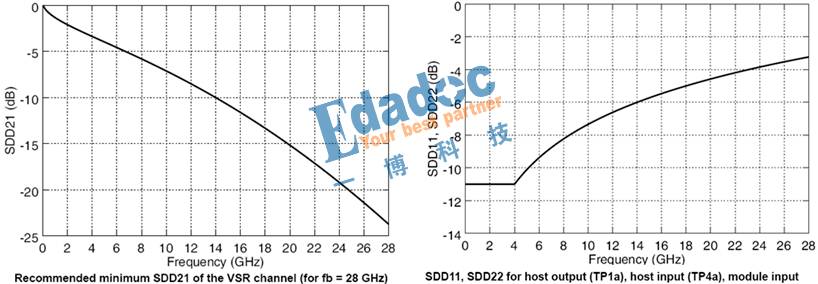 我们还是先来看看28G-VSR协议里面到底定义了通道的哪些东西吧,如下图二所示,有插损、回损及模态转换的一些无源要求。